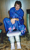 But she wasn't much of an information-seeker, and consequently, didn't realize she had Ataxia. Ada just thought... (actually, I have no idea what she thought). Although she and I were close, Mom went to great lengths to deny her Ataxia. She knew something was wrong, but backed away from putting clues together. Her family decided that her behavior was because she had never taken care of her health, drank too much, watched too much TV, stayed on her chaise lounge 24-7, and wanted to be catered to. My usually "snappy" mother took all of our judgements in silence. That should have tipped me off to a problem right there. As her only child, one of my saddest thoughts is that she was alone in this. Mom's self image was just too important to her and that trumped everything else. She said nothing, we said nothing. Ada died of pancreatic cancer before she progressed neurologically (she would have considered that the good news).